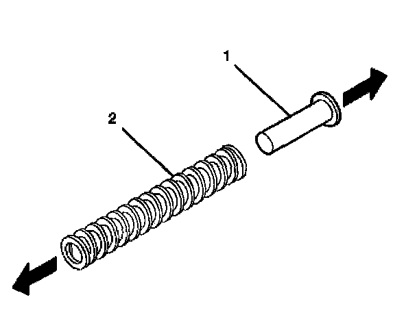 4. Remove the spring guide (1) from the tilt spring (2).