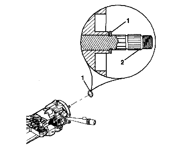 Important: The retaining ring (1) must seat securely on the groove of the shaft assembly (2).