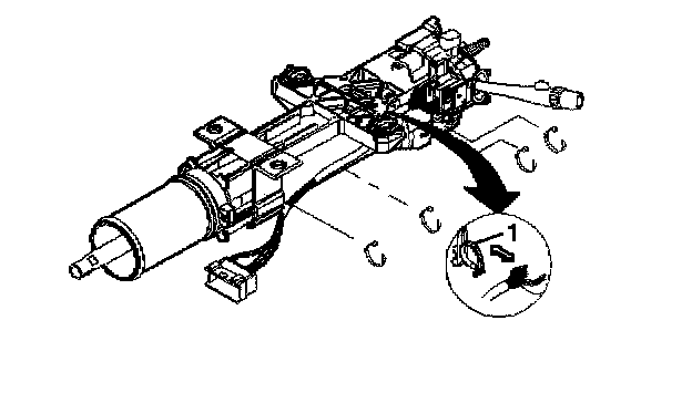8. Install the wire harness assembly into the wire restraint clip (1).