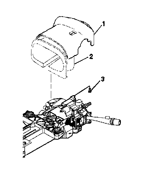 3. Install the upper trim cover (1) with the closeout trim cover (2) and secure by using 1 TORX(R) head screw (3).