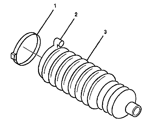 Important: The rack and pinion boot (3) must not be twisted, puckered or out of shape in any way. If the rack and pinion boot (3) is not shaped properly, adjust the rack and pinion boot (3) by hand before installing the boot clamp.