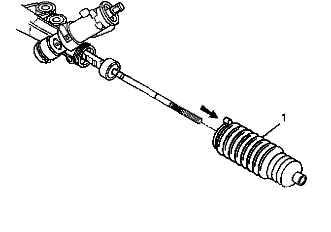 6. Remove the rack and pinion boot (1) and the breather tube from the rack and pinion gear assembly.