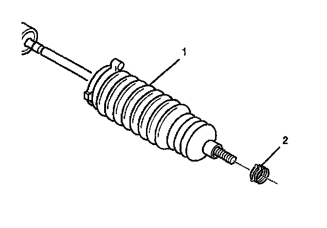 1. Install the new boot clamp (2) onto the rack and pinion boot (1).