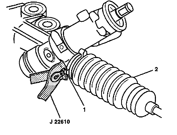 6. Install the boot clamp (1) on the rack and pinion boot (2) with 122610.