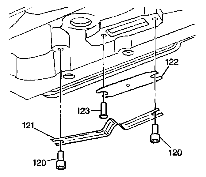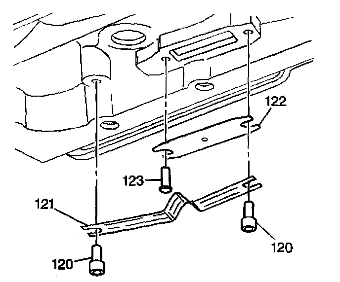 6. Carefully install the thermo element (121) between the two pin and washers (120). The V in the thermo element (121) must contact the thermo element plate (122).