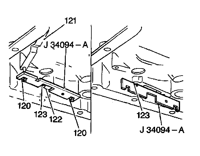 1. Use the J 34094-A to set the middle thermo pin (123).