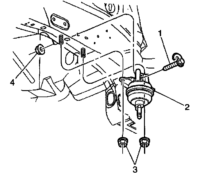 5. Remove the nut (4) and bolt (1) and the nuts (3) from the vehicle.