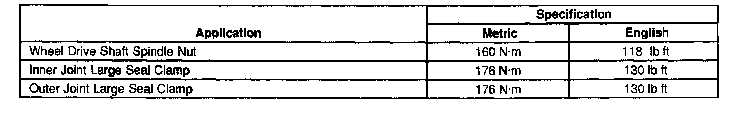 Axle Shaft Assembly: Specifications