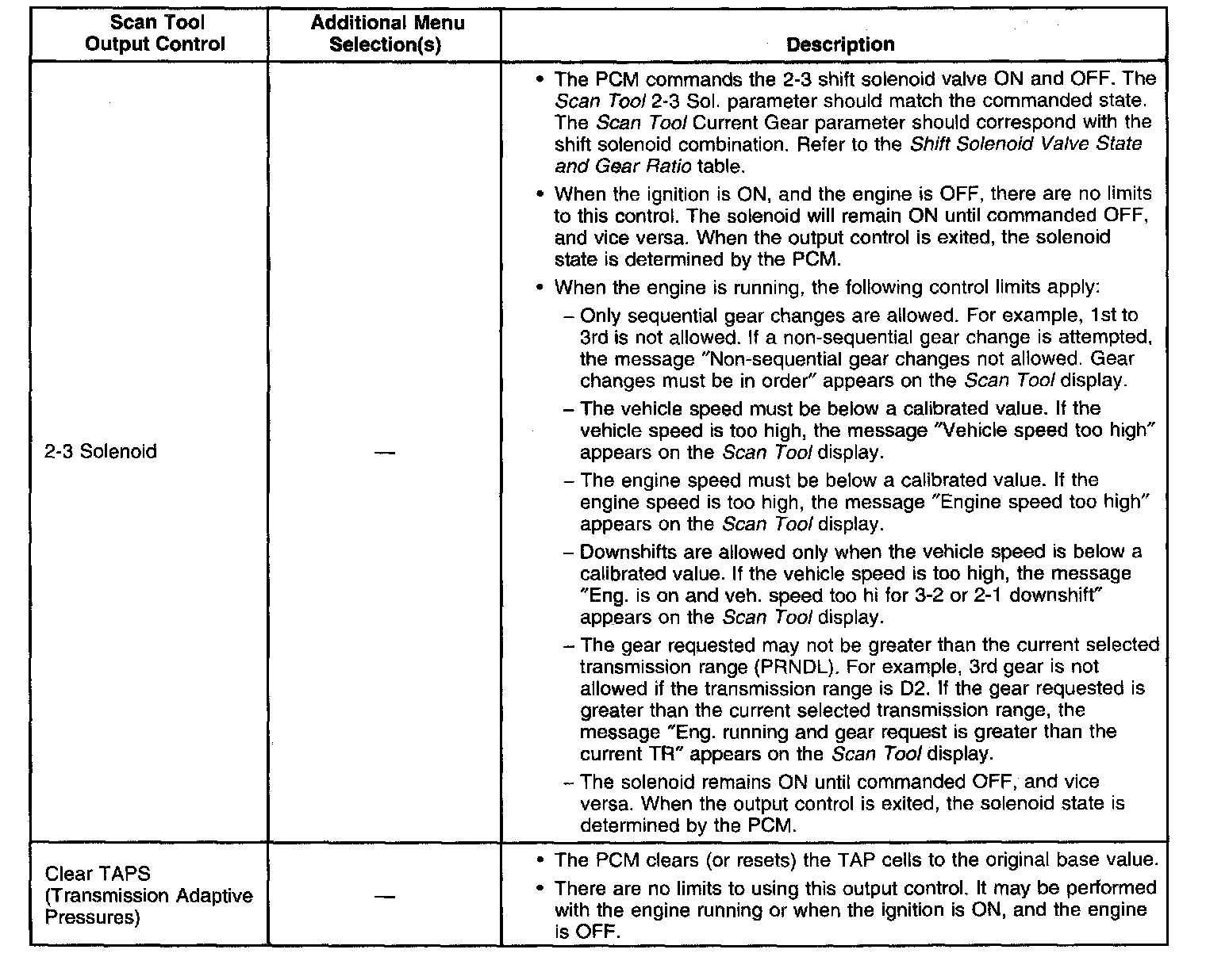 Scan Tool Output Controls