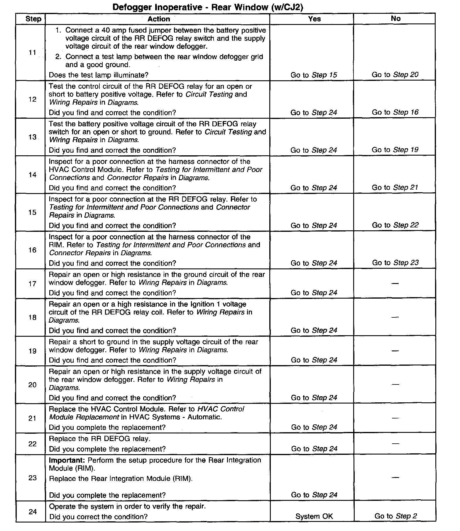 Defogger Inoperative - Rear Window (With RPO CJ2)