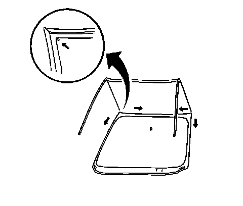 1. Locate the molding corners to the locator line at the windshield corners.