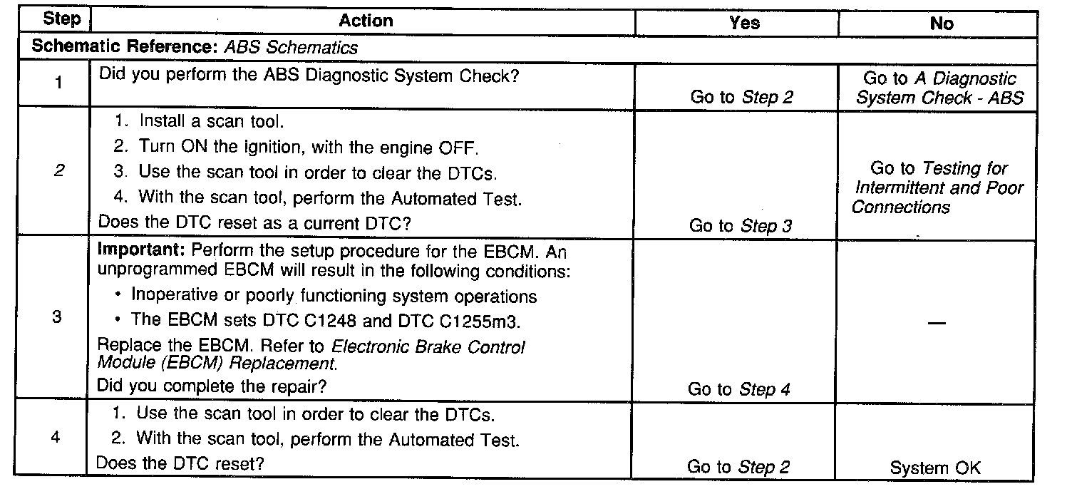 ^ When the scan tool displays DTC C1255m3, the EBCM has not been programmed. Perform the setup procedure for the EBCM.