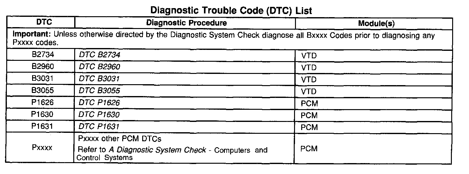 Diagnostic Trouble Code Descriptions