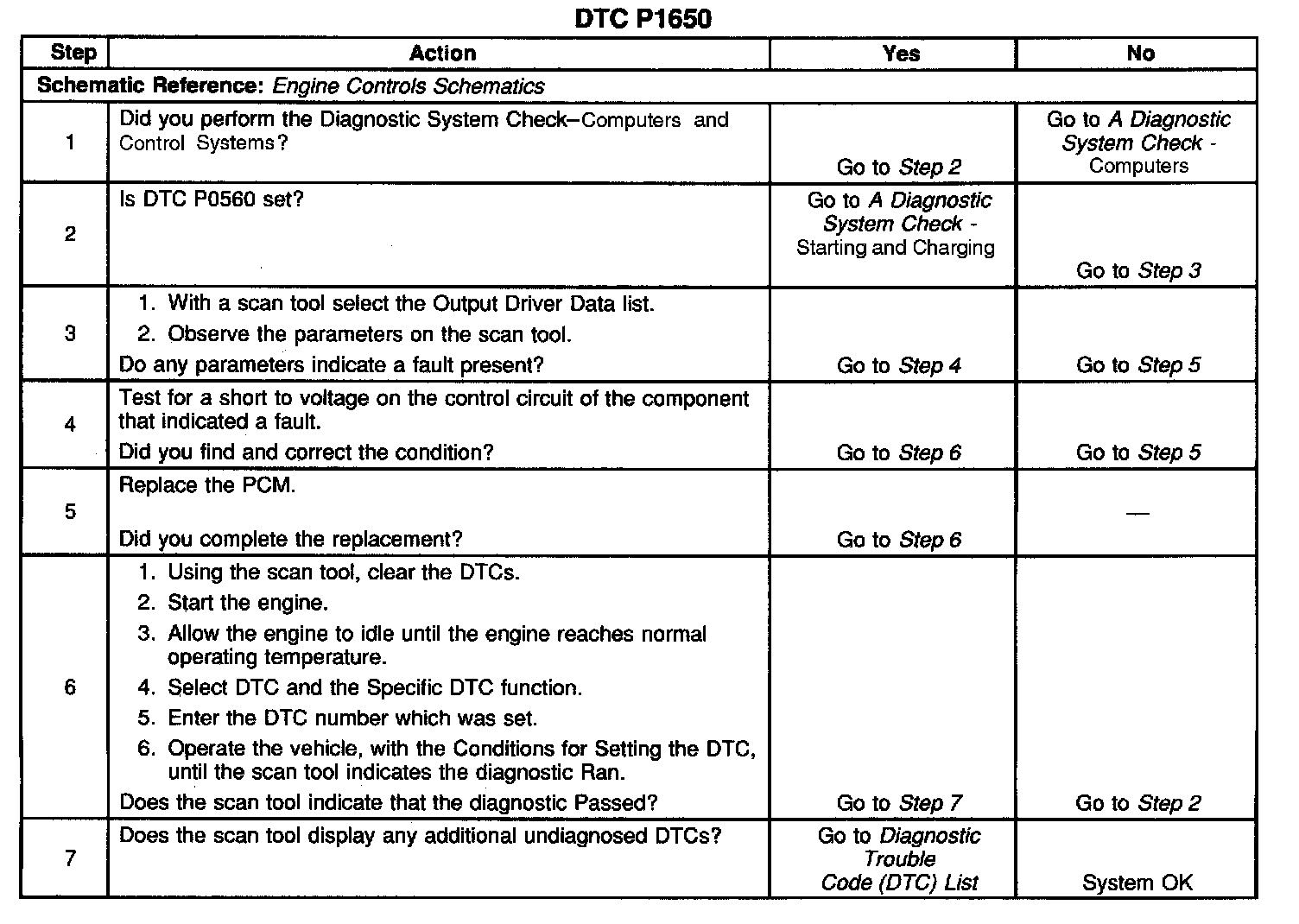 CIRCUIT DESCRIPTIONOutput Driver Modules (ODM) are chips that are inside the Powertrain Control Module (PCM). ODMs provide grounded outputs that control devices. Each output has an internal feedback circuit that connects to the PCM microprocessor. ODM 2 determines if the voltage or the current may cause damage to the PCM. The PCM monitors voltage through the battery input. Any incorrect current that is on a circuit to the ODM will cause the ODM to report this DTC.