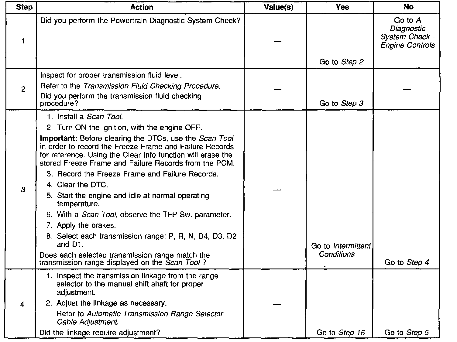 3. This step tests the indicated range signal to the manual valve range actually selected.