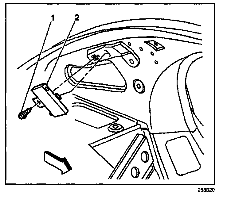 2. Rotate the tab down in order to align the hole for the bolt (1).