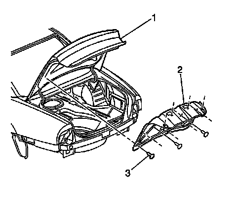 1. Remove the push-in retainers (3) from the rear compartment lid trim (2).