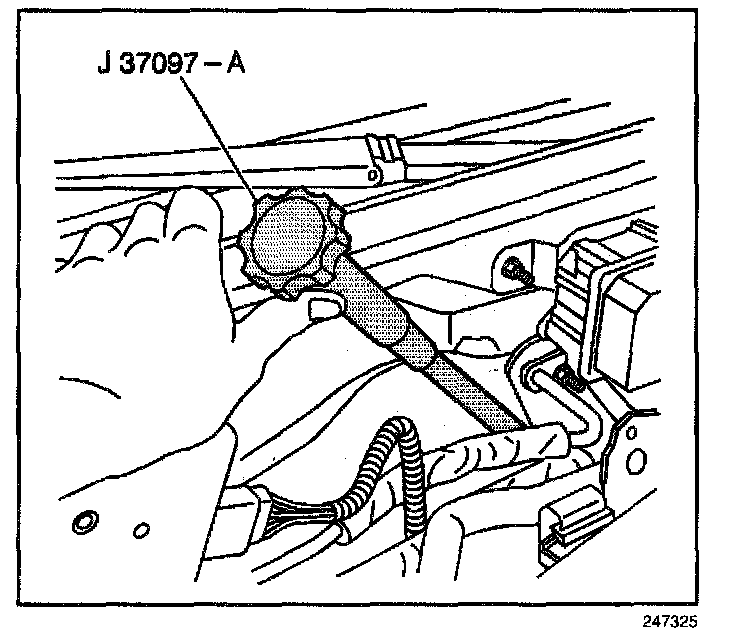 2. Position the J 38185 in order to remove the heater hose clamps.