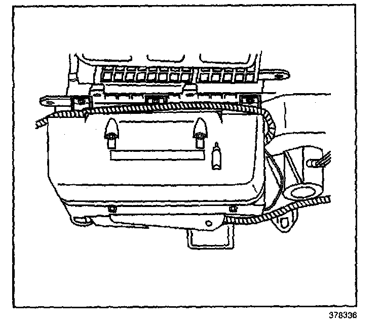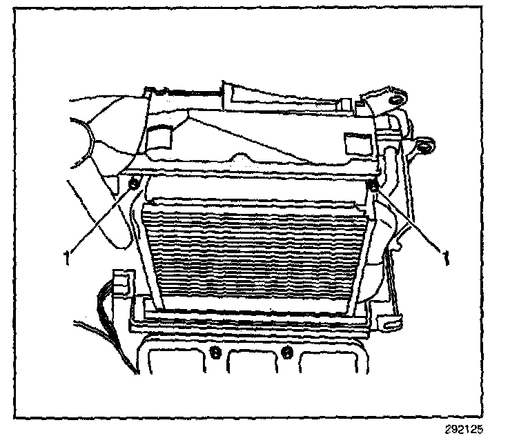 1. Install the heater core into the HVAC module and attach the retaining straps and screws (1).