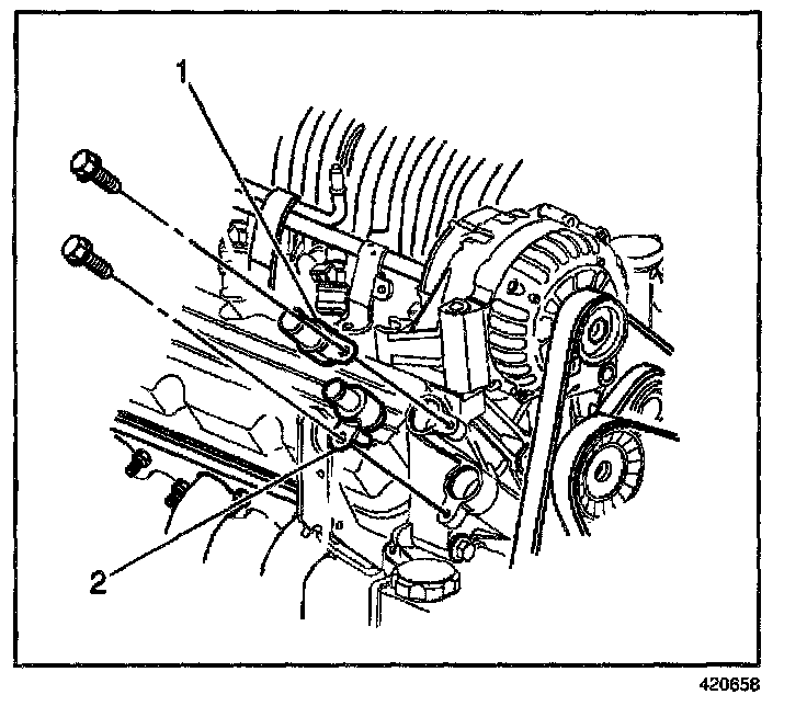 3. Remove the bolt from the heater pipe adapter (1).