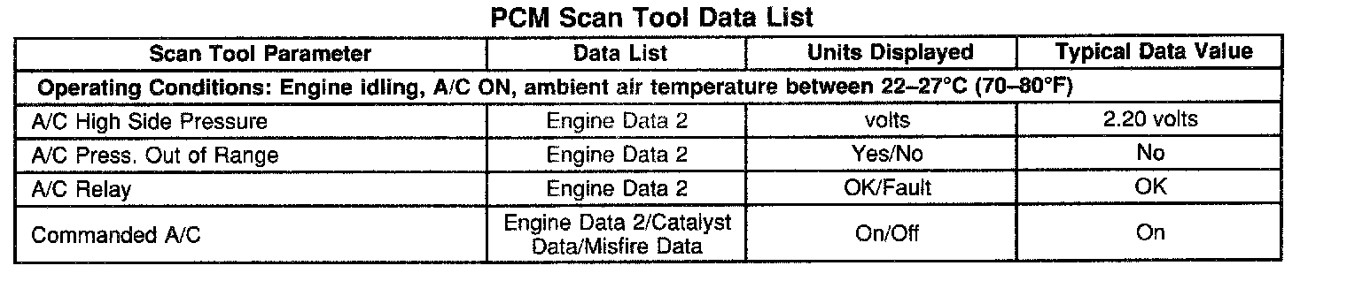 Scan Tool Data List - Powertrain Control Module (PCM)