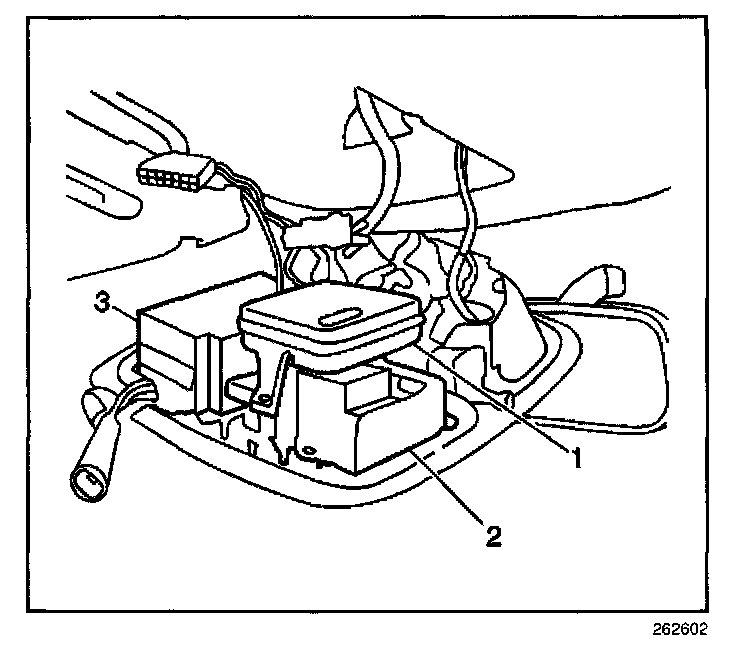 4. Remove the fasteners from the HUD control switch (1) or the image adjuster switch at the overhead console.