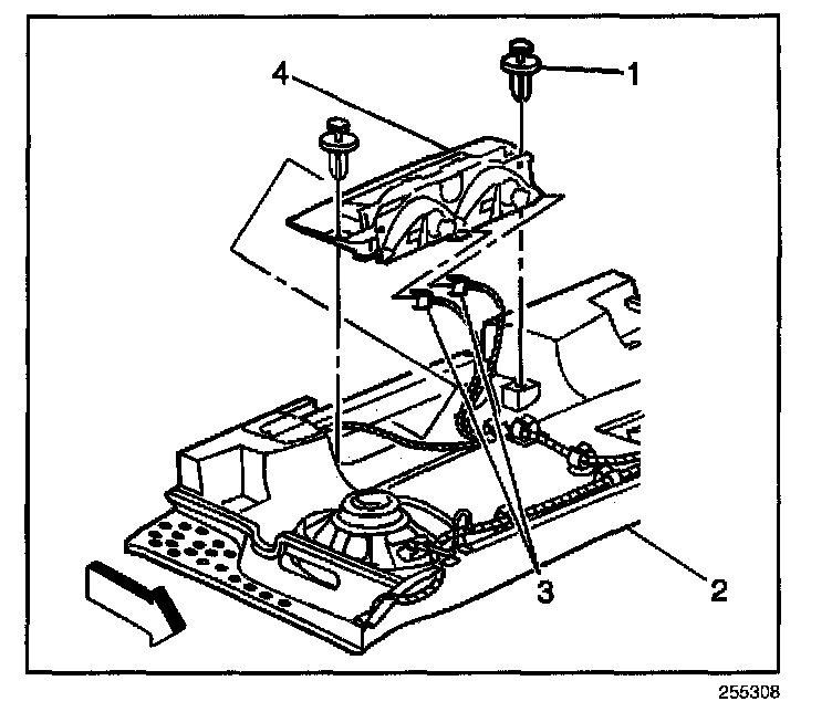 1. Remove the push-in retainers (1) from the center high-mounted stoplamp (4).