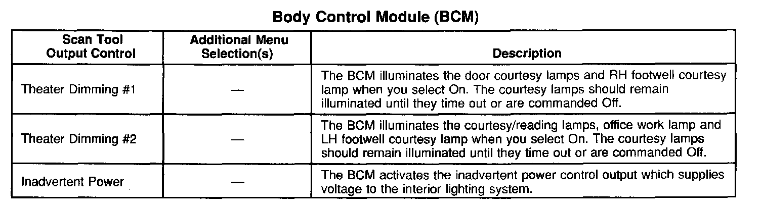 Scan Tool Output Controls - Body Control Module (BCM)