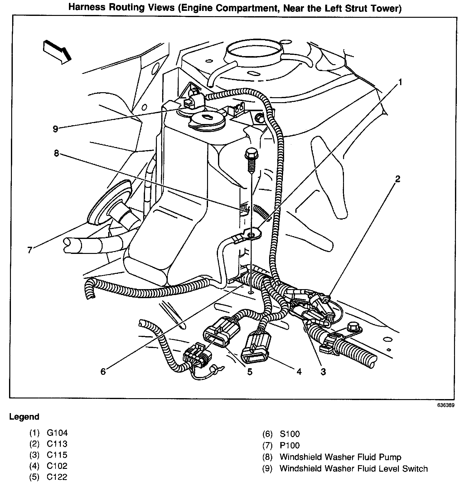 Harness Routing Views (Engine Compartment, Near the Left Strut Tower):