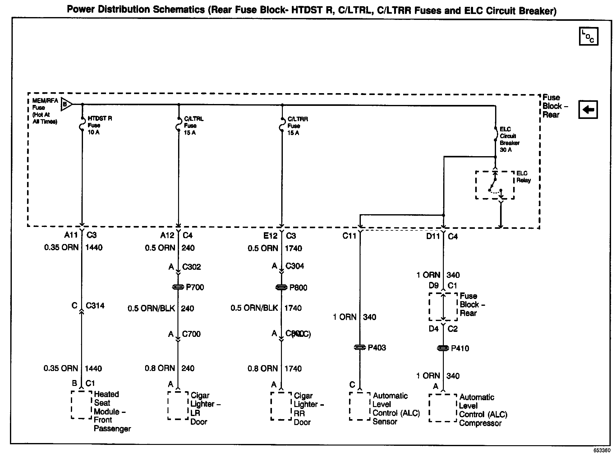 Power Distribution Schematics: Rear Fuse Block- HTDST R, C/LTRL, C/LTRR Fuses And ELC Circuit Breaker: