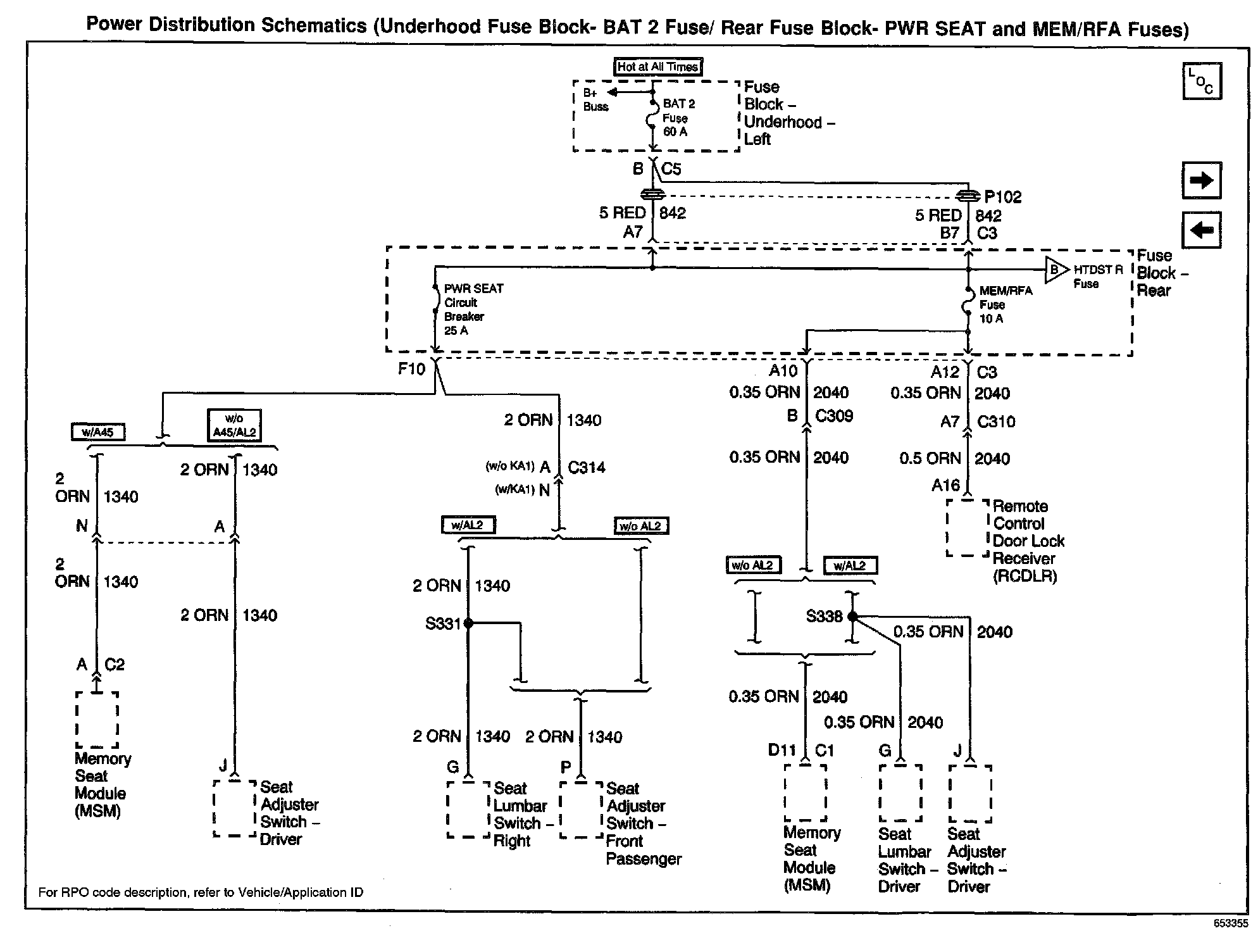 Power Distribution Schematics: Underhood Fuse Block- BAT 2 Fuse/Rear Fuse Block- PWR SEAT And MEM/RFA Fuses: