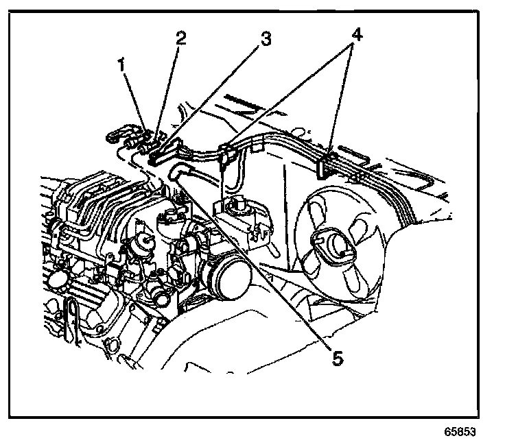 2. Remove the hardware retaining the EVAP pipe/hose (4).