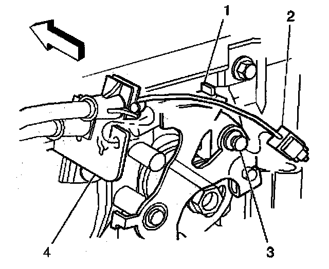 10. Remove the accelerator controls cable (1) accelerator controls cable bracket (2).
