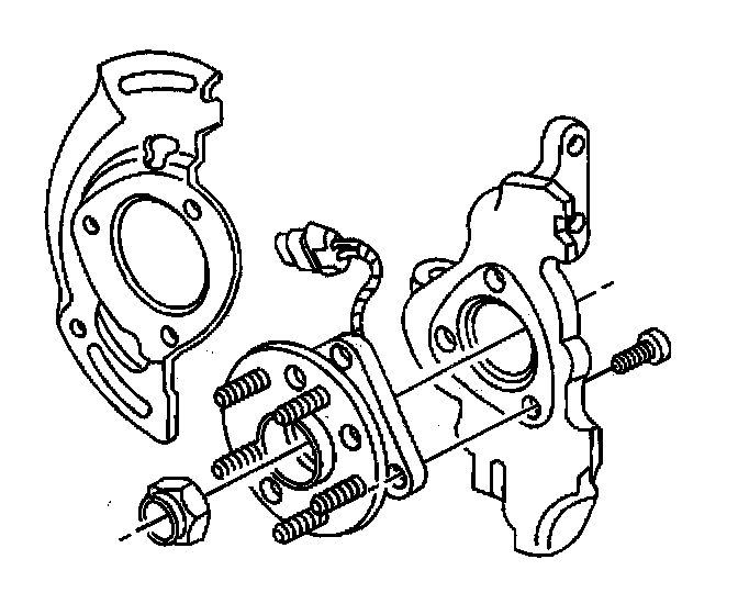 5. Remove the brake rotor. Refer to Brake Rotor Replacement - Front in Brakes and Traction Control.