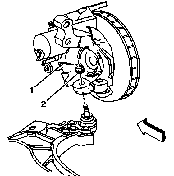 9. Install the caliper support bracket/caliper assembly. Refer to Brake Caliper Replacement - Front.