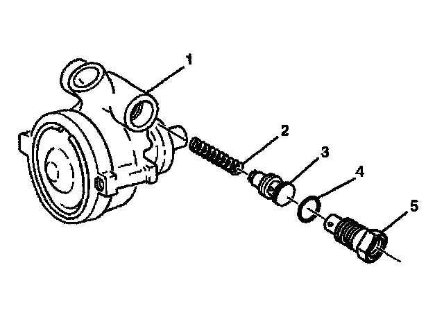 1. Remove the O-ring union fitting (5) from the hydraulic pump housing assembly (1).