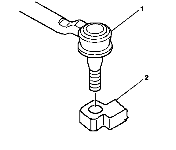5. Install the right outer tie rod (1) to the steering knuckle (2).