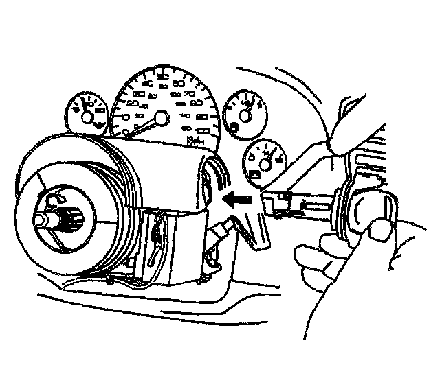 13. Remove the ignition lock cylinder from the lock module assembly by pulling the ignition lock cylinder away from the steering column.