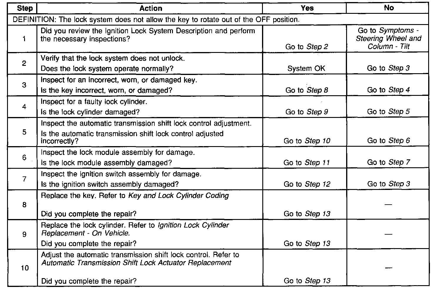 Lock System Does Not Unlock - Tilt Column