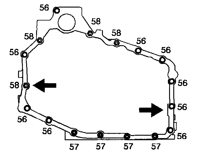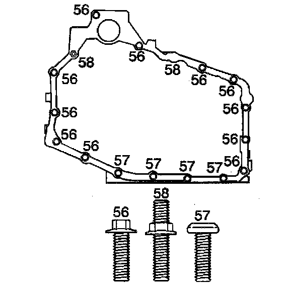 5. Install case side cover bolt. (56) and one side cover to case stud bolt (58) in the locations shown. These bolts will properly locate the case side cover and gasket to the case.