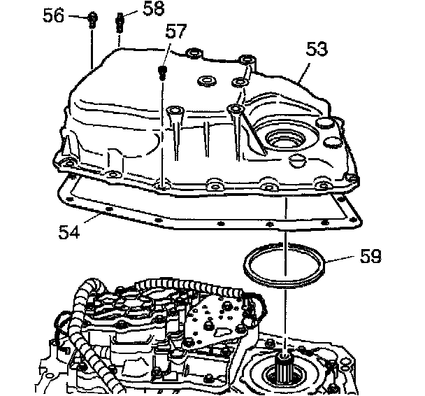 4. Install the case side cover gasket (54) and case side cover (53) onto the case. Make sure the gaskets and electrical connector are positioned correctly.