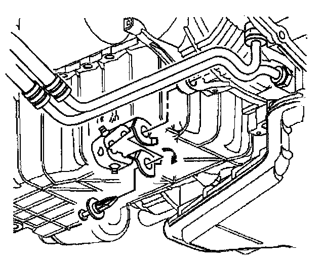 Removal ProcedureNotice: Allow sufficient clearance around the transaxle oil cooler pipes and around the hoses to prevent damage or wear which may cause fluid loss.