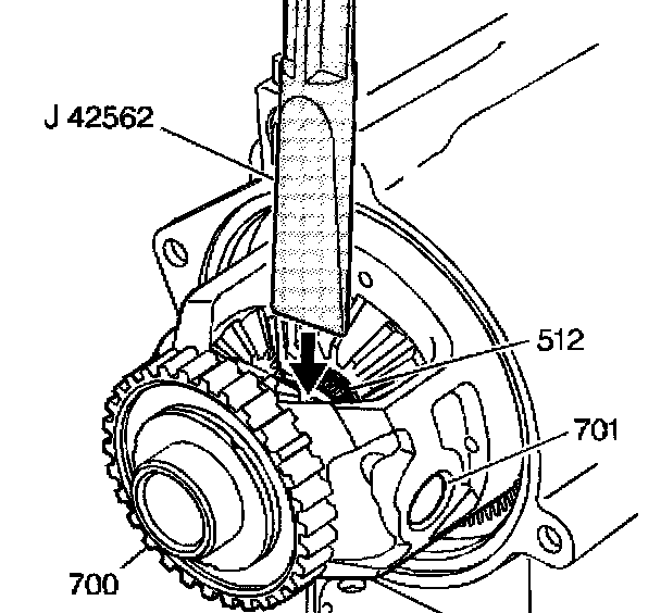 4. Place the J 42562 between the end of the output shaft and the differential pinion shaft.