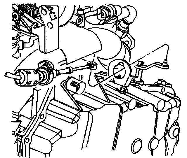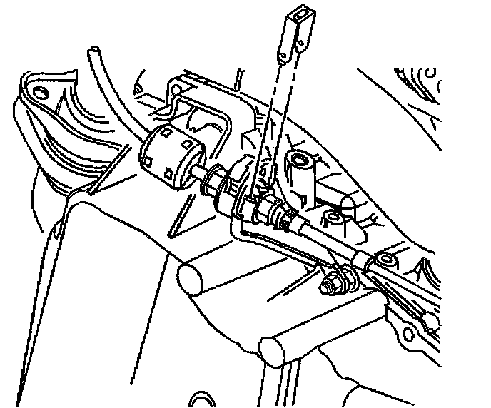 7. From under the hood, grasp the shift cable terminal and pull it toward the pin on the manual shaft lever. The shift cable adjuster spring should compress as the terminal is moved toward the pin.