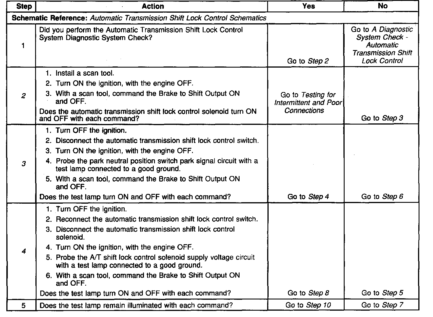 2. Listen for an audible click when the automatic transmission shift lock control solenoid operates. Command both the ON and OFF states. Repeat the commands as necessary.