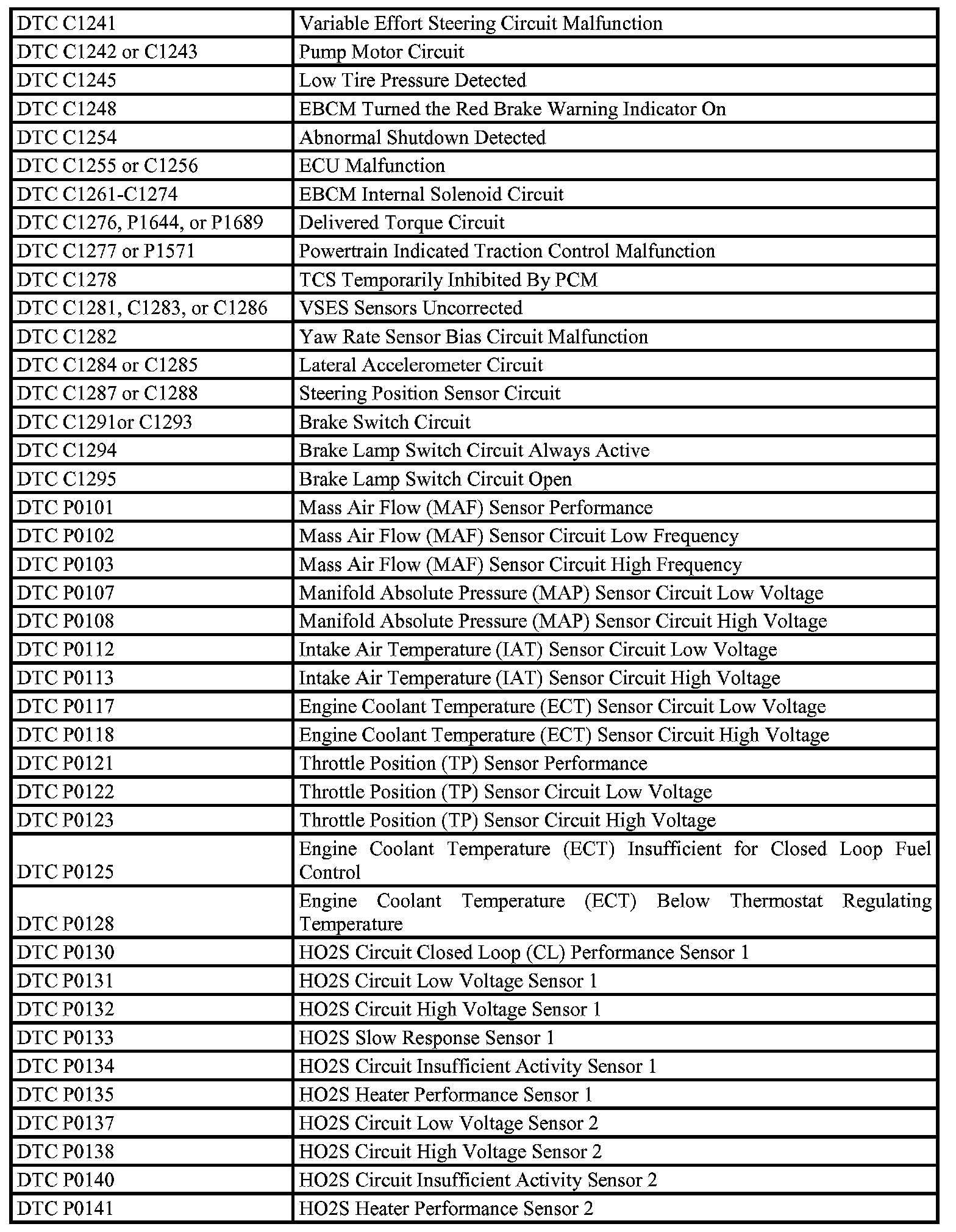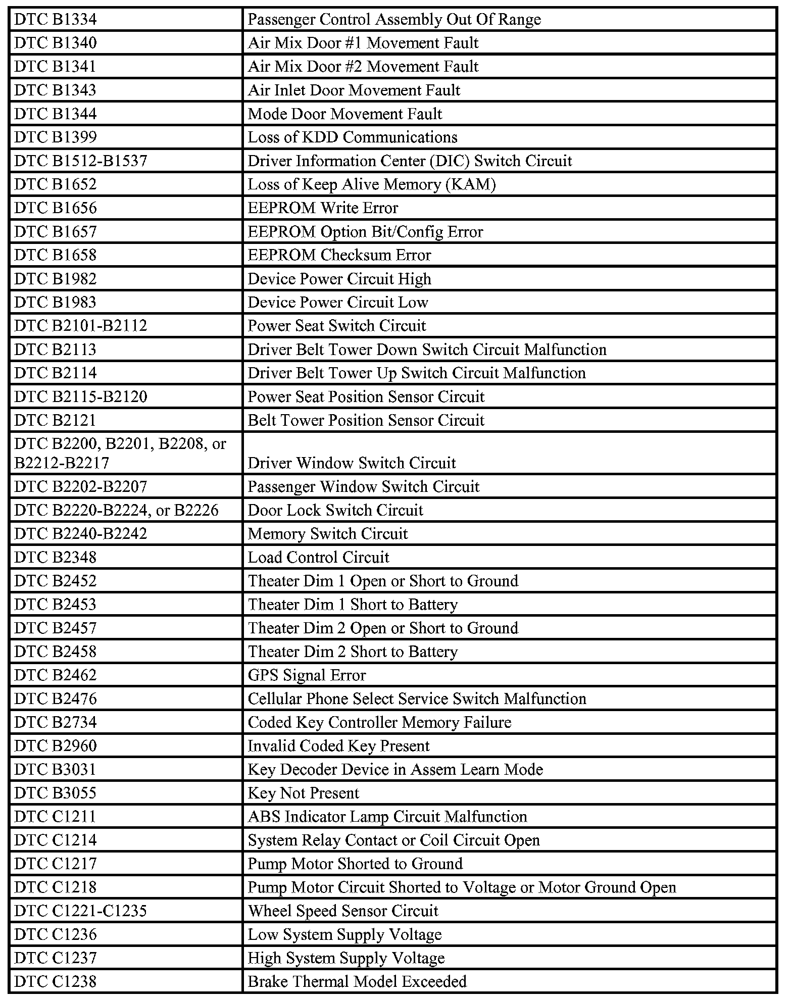 A L L Diagnostic Trouble Codes ( DTC )