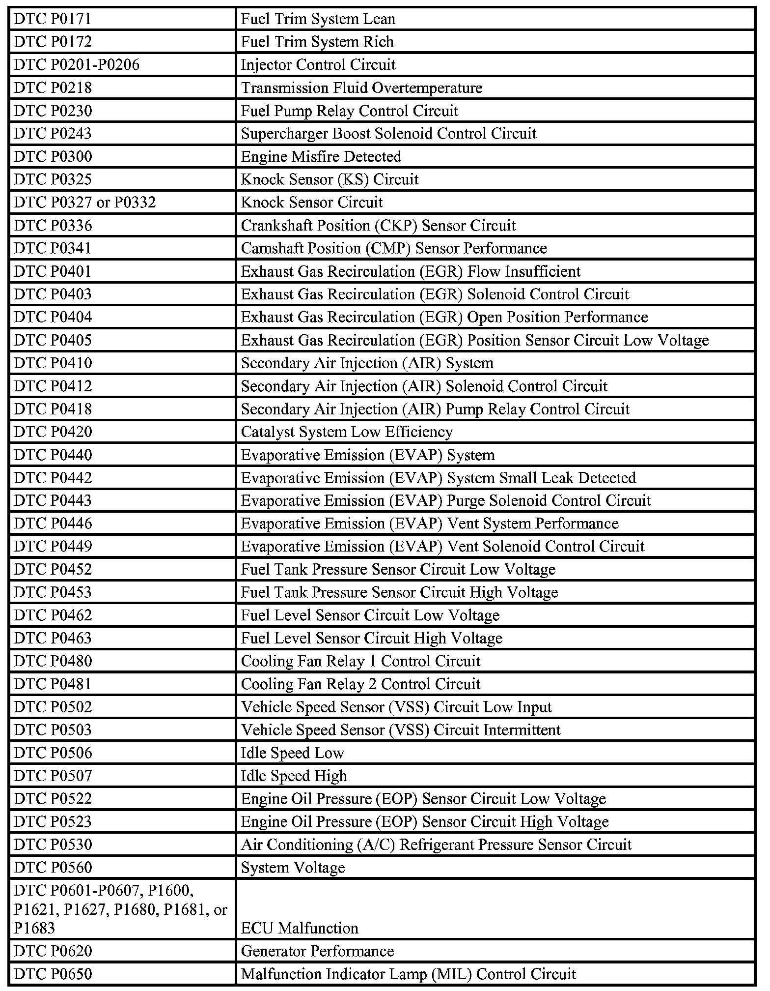 P0171 - P0650: