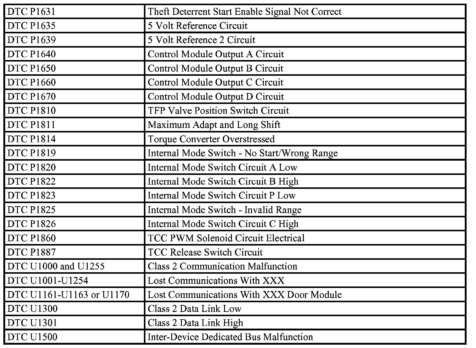Diagnostic Trouble Code Descriptions