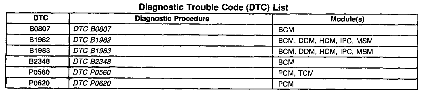 Diagnostic Trouble Code (DTC) List:
