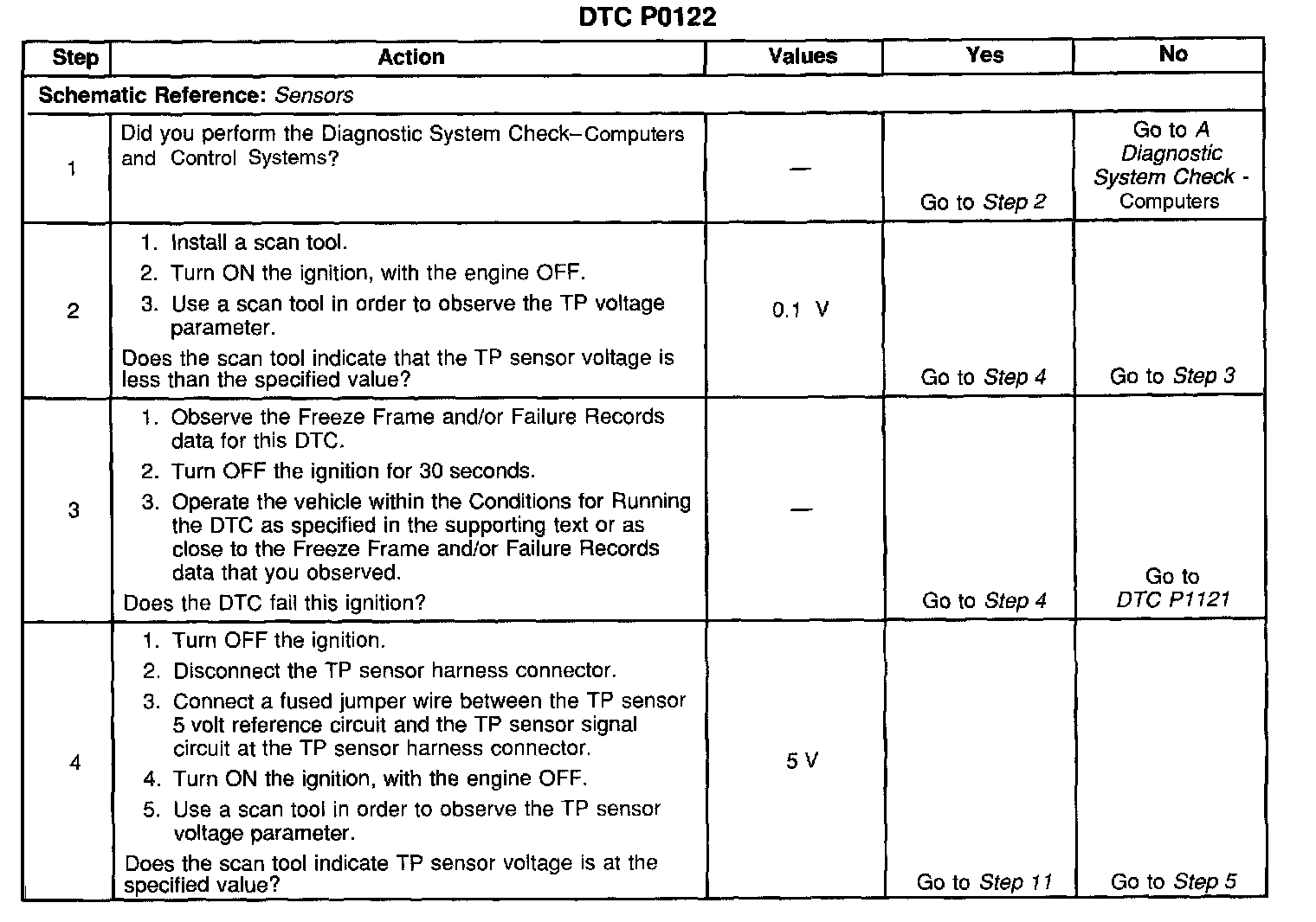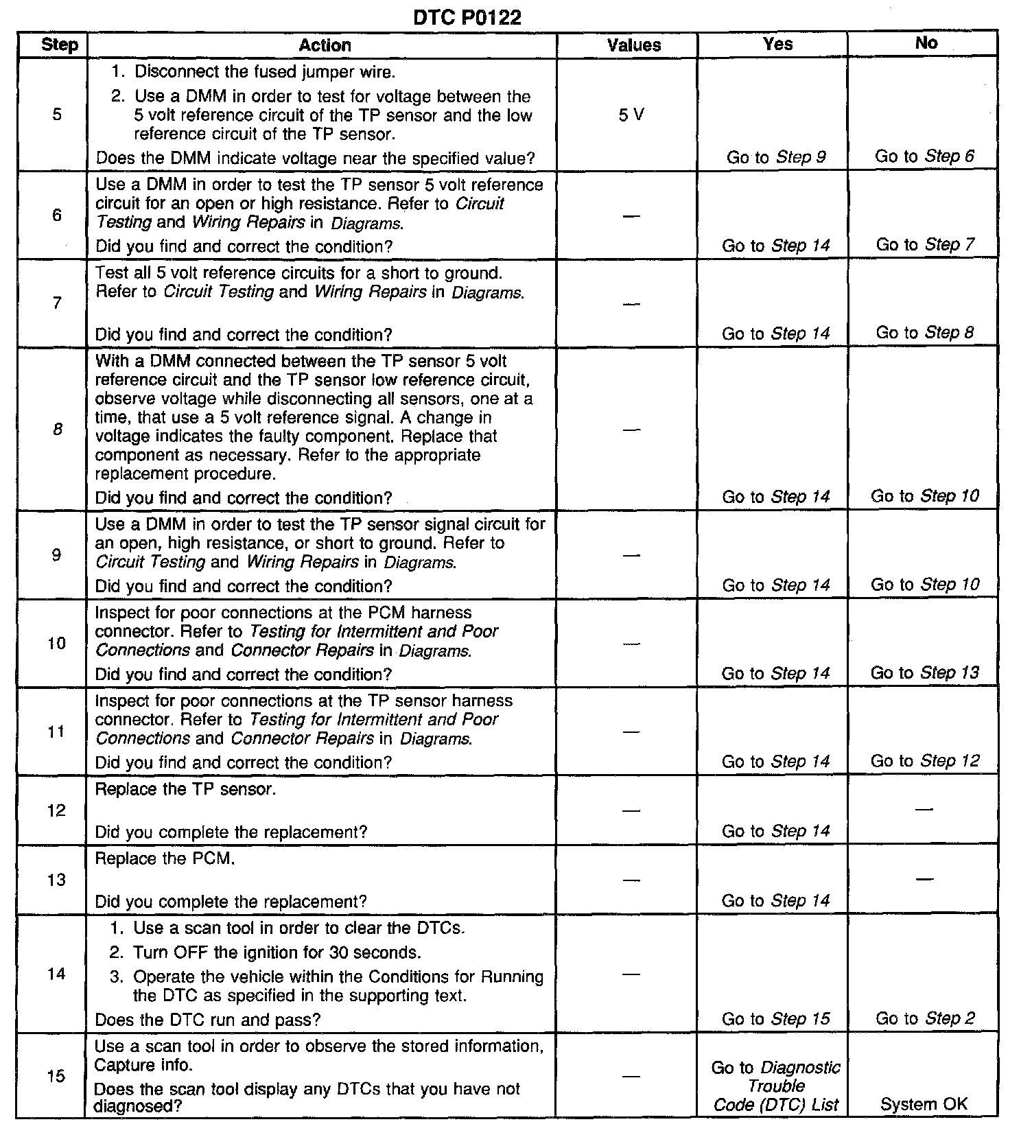 8. Malfunctioning components that share the TP sensor 5 volt reference circuit could cause a low voltage condition on this circuit.